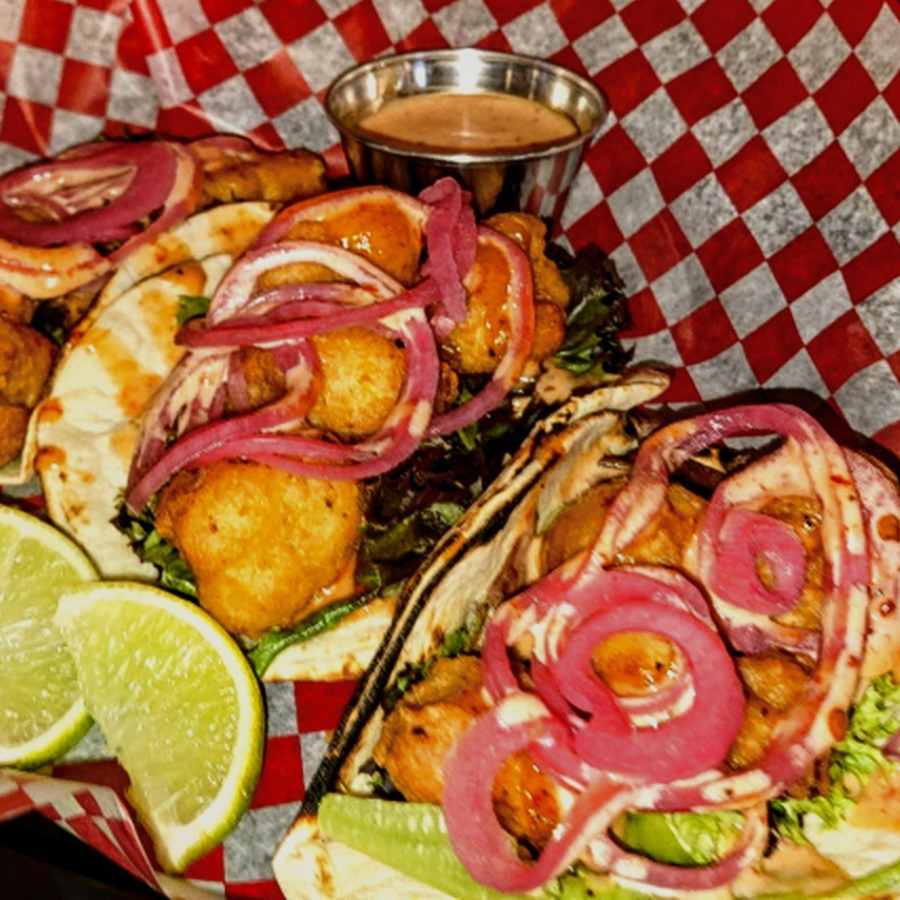 - Maple Tacos: with your choice of either beef or caulibites (default), maple chipotle sauce, pickled onion, spring mix.