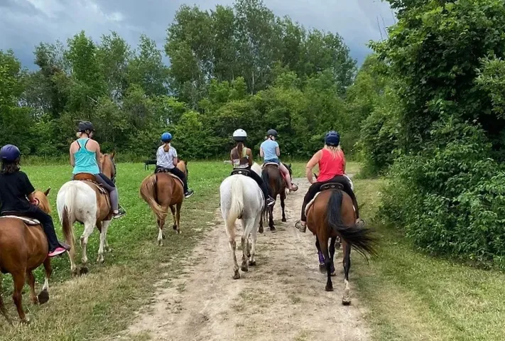 Our trail rides will wind you around our pine forest, and whisk you away from reality when we take a short stroll through our cedar and hardwood bush. Let the wind play in your face when we travel through our hay fields and along the Trans Canada Trail. We have just added 3 new trails through our hardwood bush and are hoping to start a 4th for your riding experience! It is not uncommon to see lots of wild life on our property such as deer, wild turkeys, porcupines, different birds, several varieties of butterflies, fox, squirrels, chipmunks, turtles, raccoons, and coyotes.